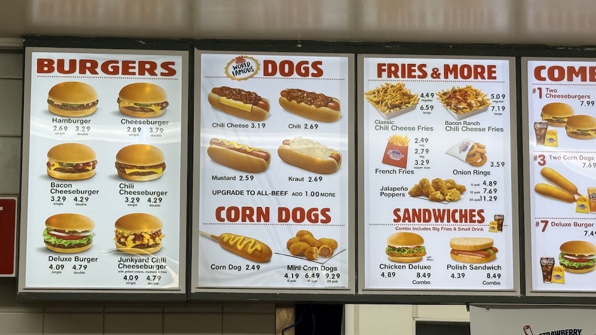 Hamburger Stand in El Centro, CA, serves up a vibrant American fast food experience, blending classic flavors with unique twists. Their menu shines with hearty options like the Ultimate Chili Cheeseburger Fries Burrito, a satisfying wrap filled with golden French fries, chili, cheddar cheese, fresh tomatoes, and pickles. The Bacon Ranch Chili Cheese Fries Burrito adds a smoky, creamy layer with chopped bacon and ranch dressing. Sandwich lovers can indulge in the Polish Sandwich, featuring a jumbo Polish dog, Swiss cheese, and tangy yellow mustard on rye bread, or the crispy Chicken Deluxe Sandwich topped with fresh lettuce and tomato.